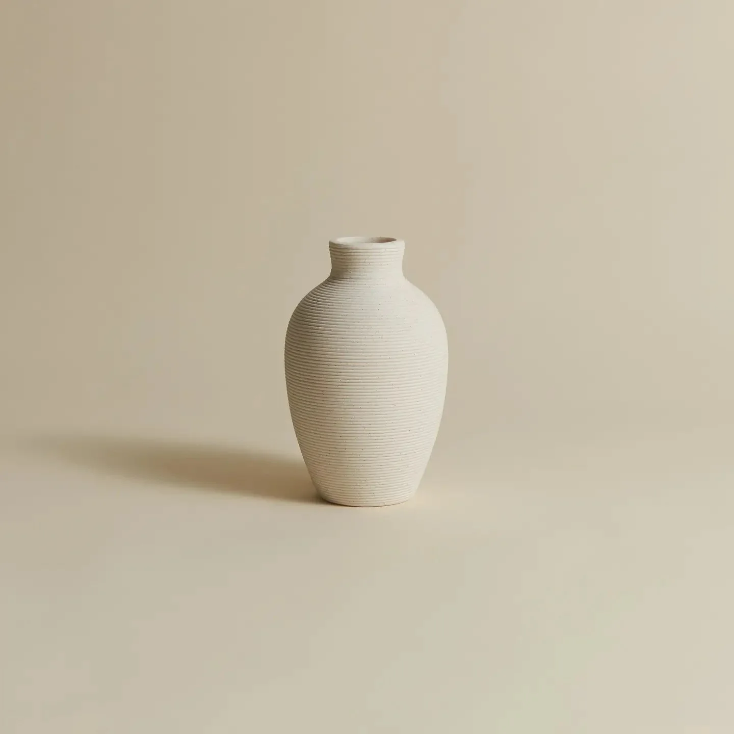 Product Dimensions: Vase Dimensions: height 5.91” x diameter 3.94” Top Neck Opening: 1.50” About the Hand-Ribbed Vase Series: