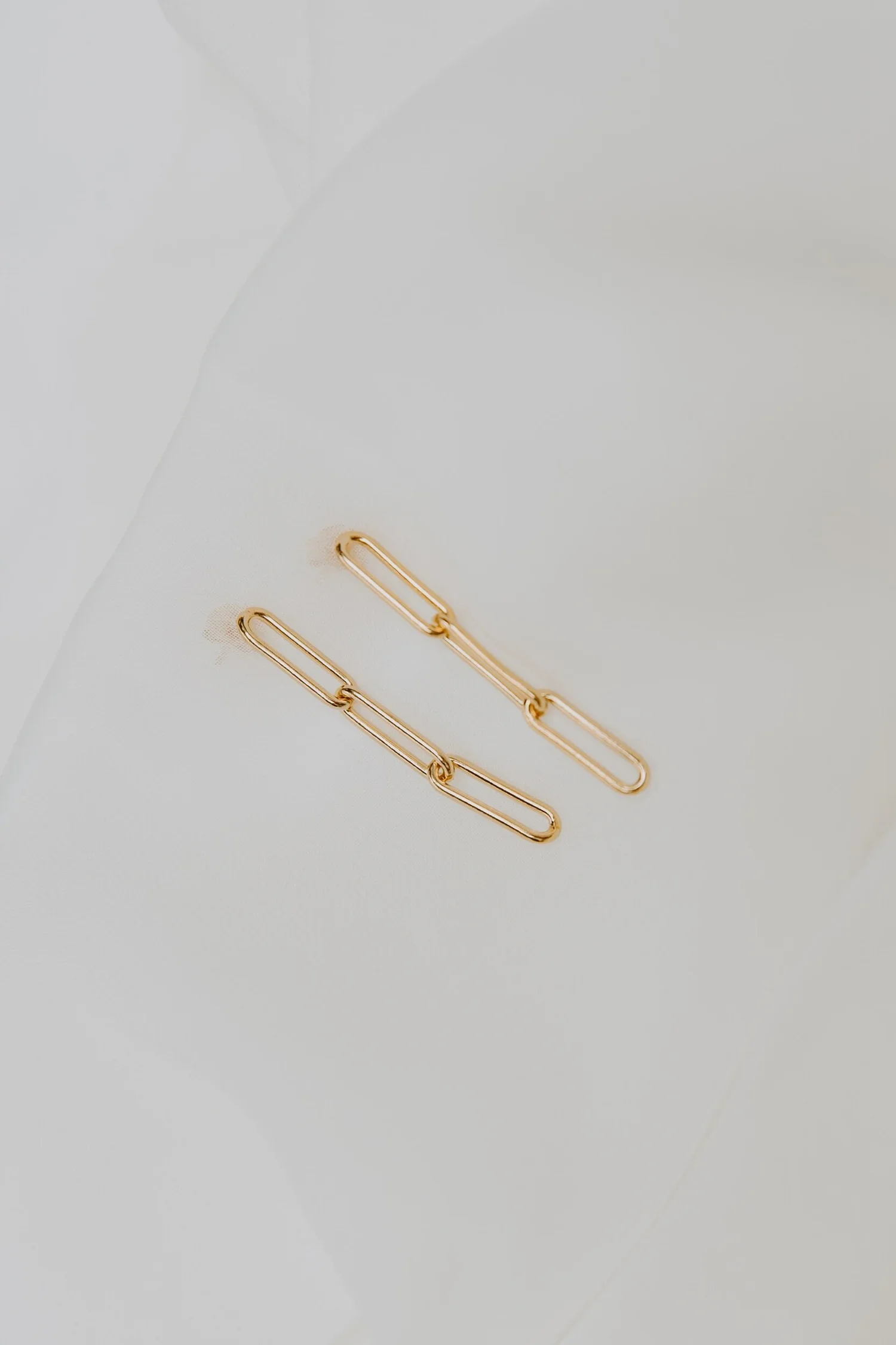one small hoop and one tiny cubic zirconia stud connected by one dainty chain