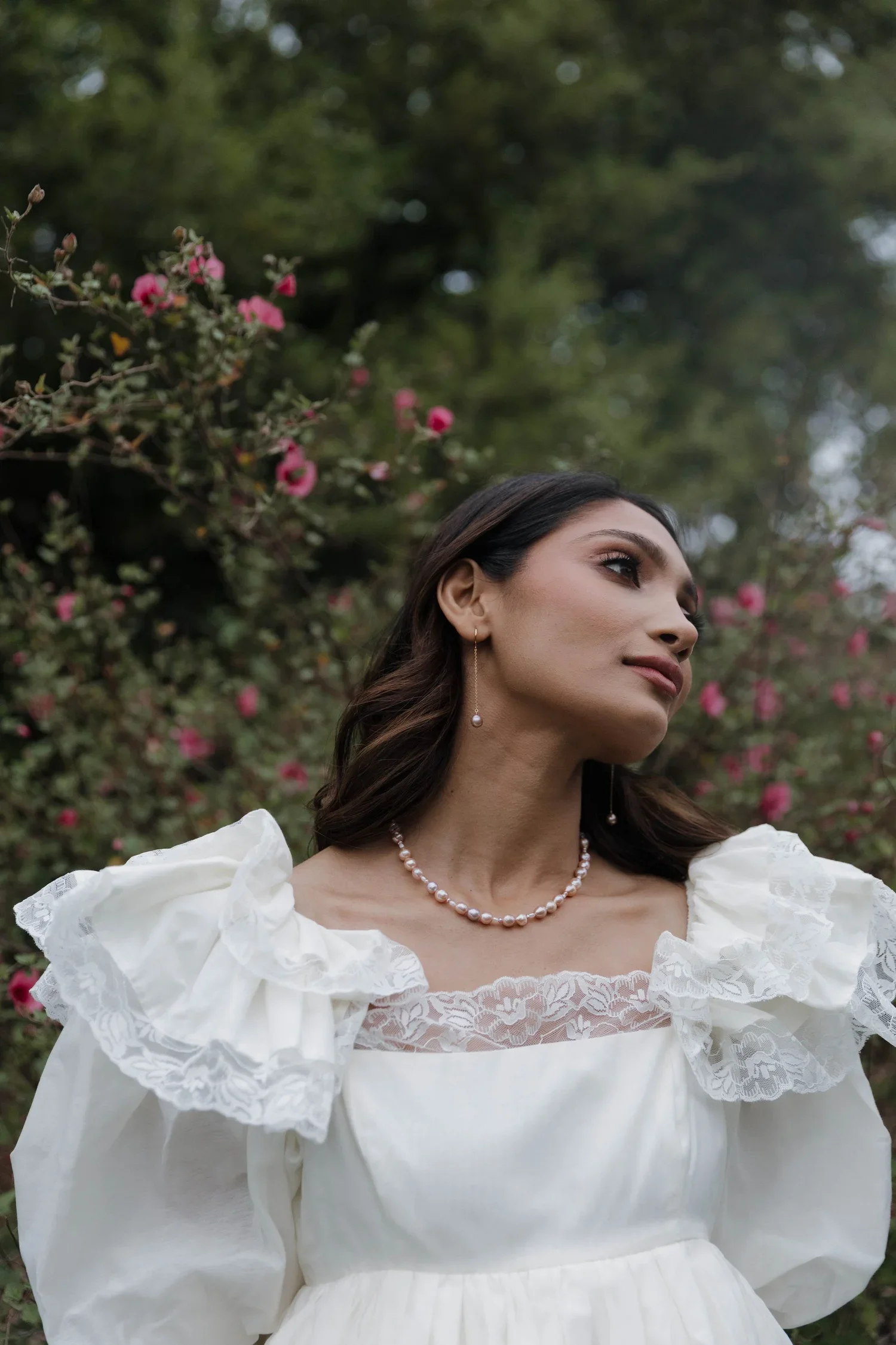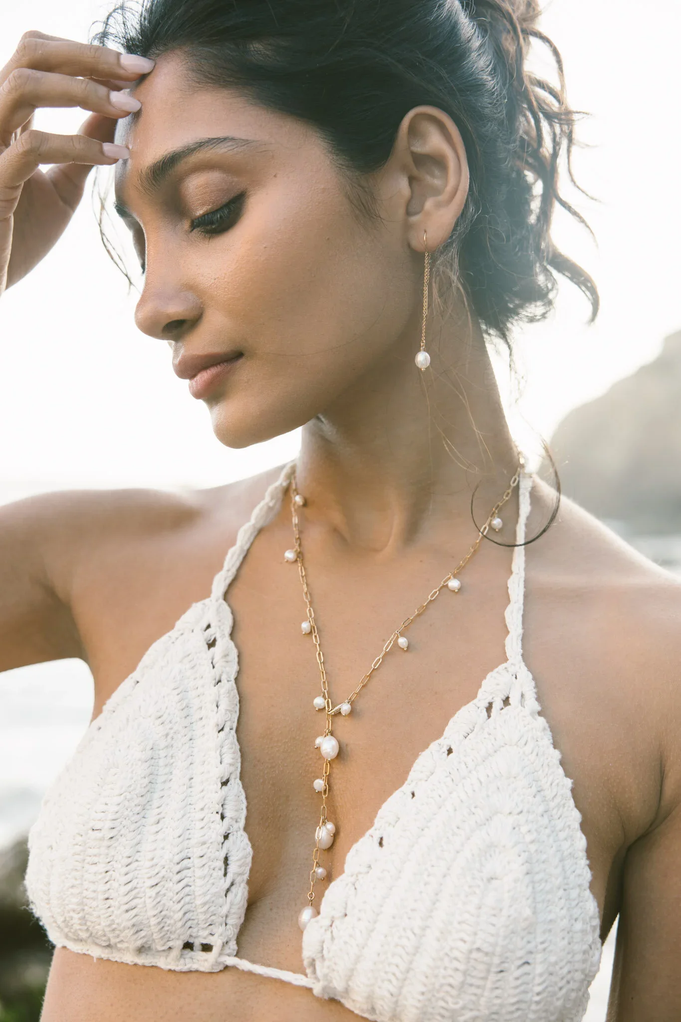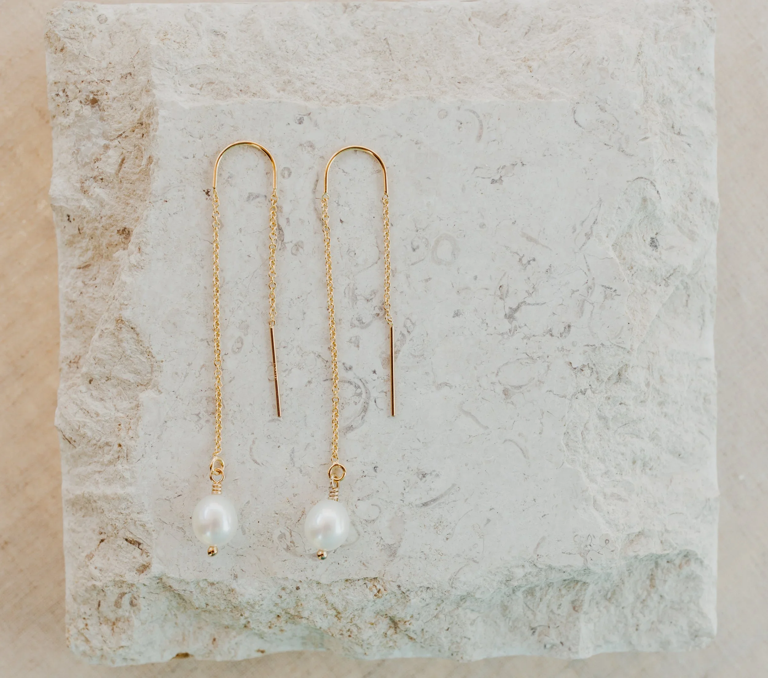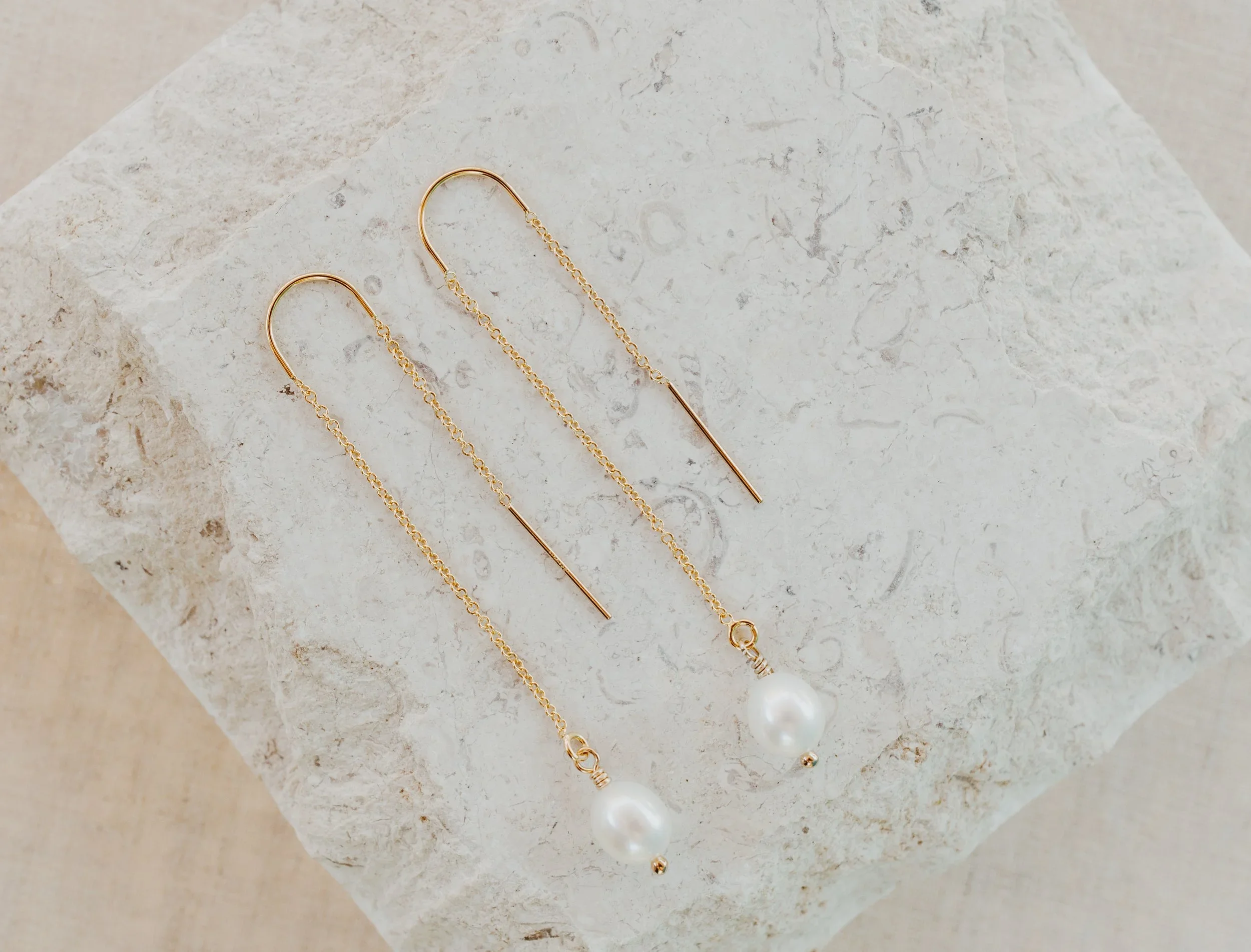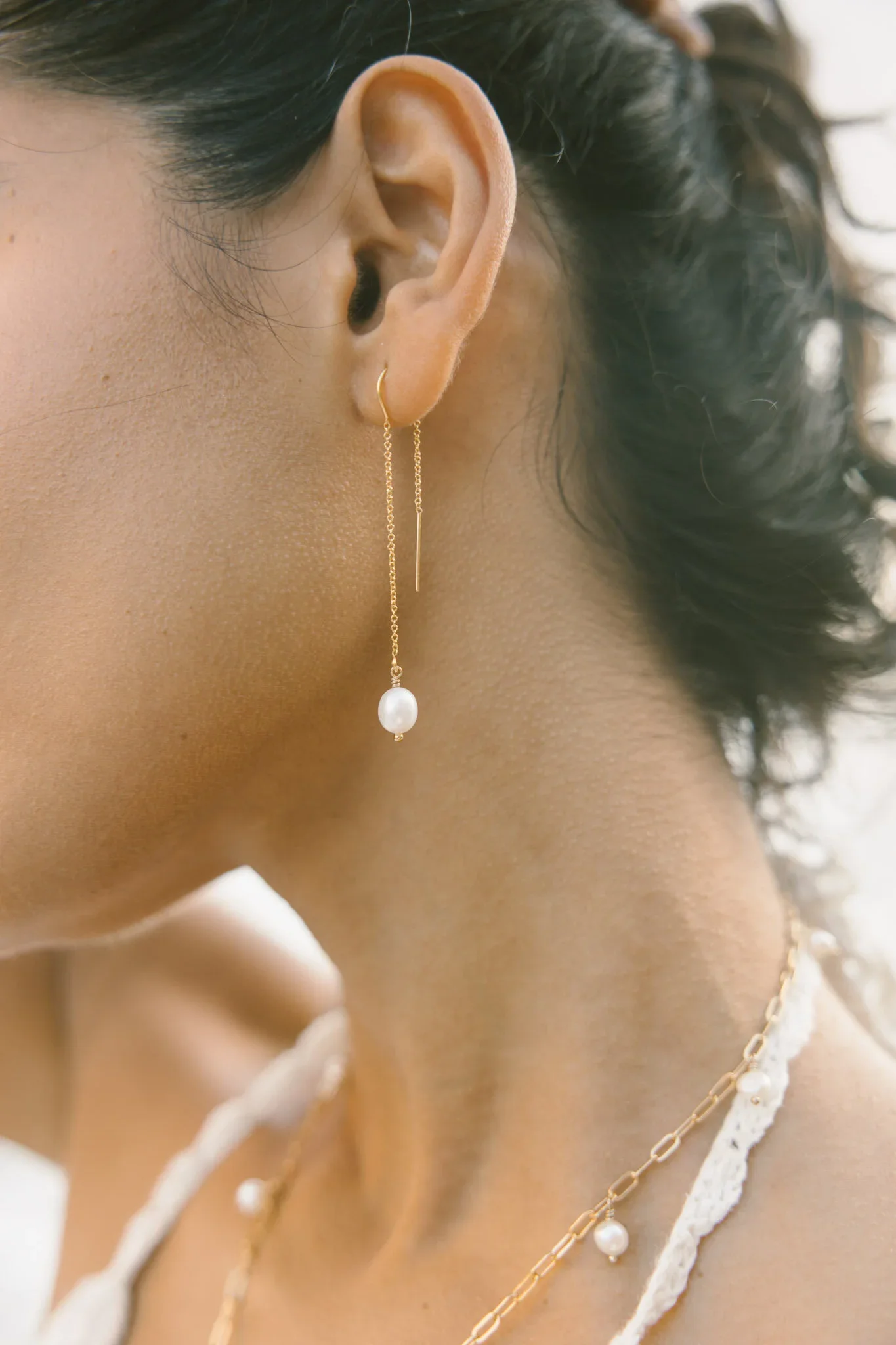 an inch and a half of small paperclip chain dangling from a 3mm white topaz earring stud