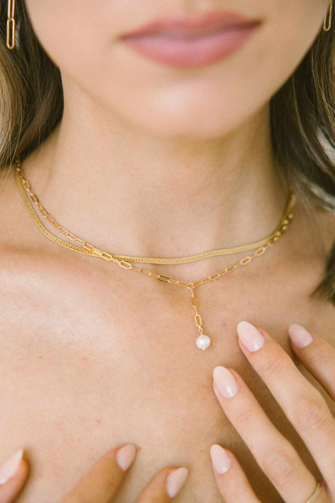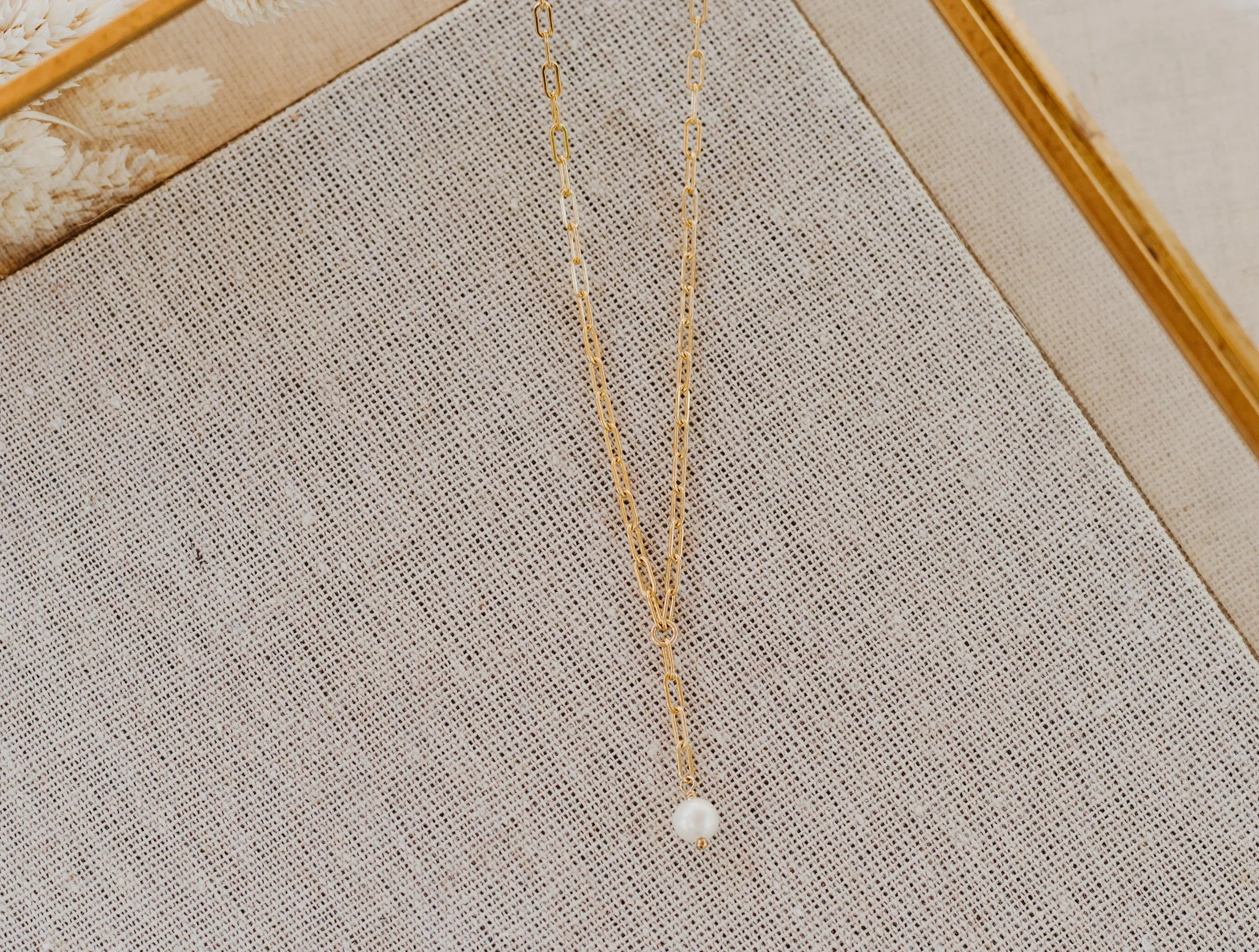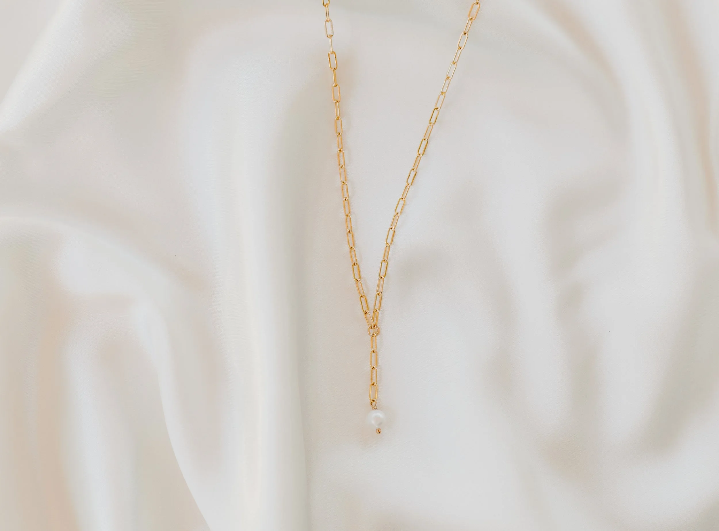 one luscious and vibrant rectangular white freshwater pearl dangling from our bestselling tessa chain. an essential for a complete layered neck.