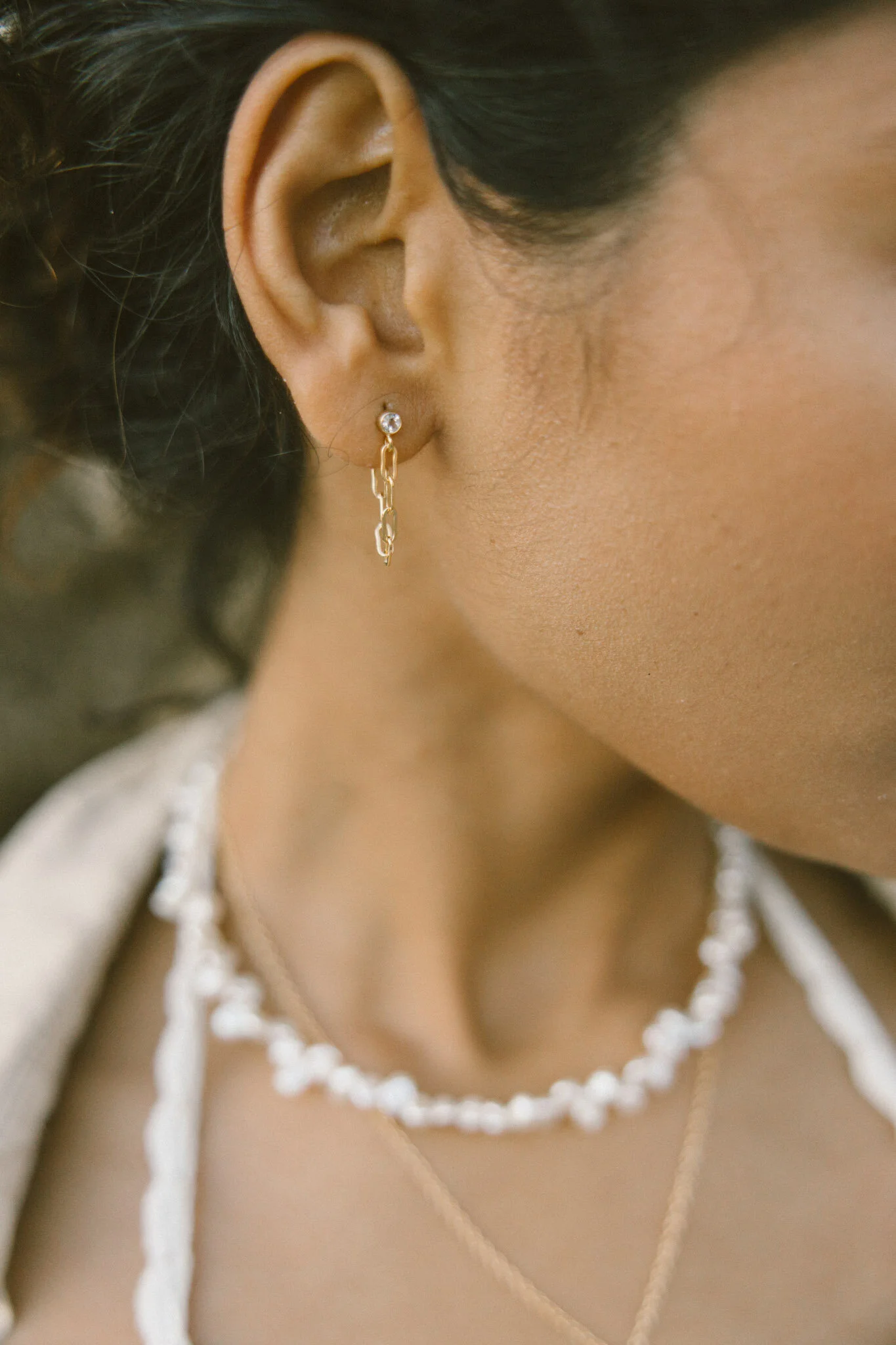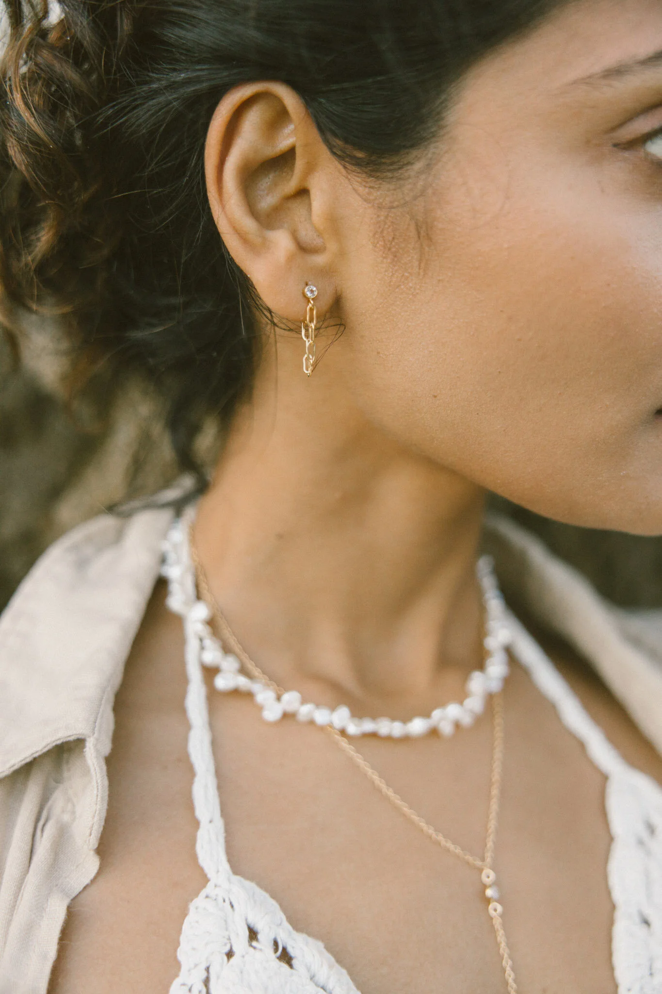 tiny pink freshwater pearls, dangling from a pair of threader earring